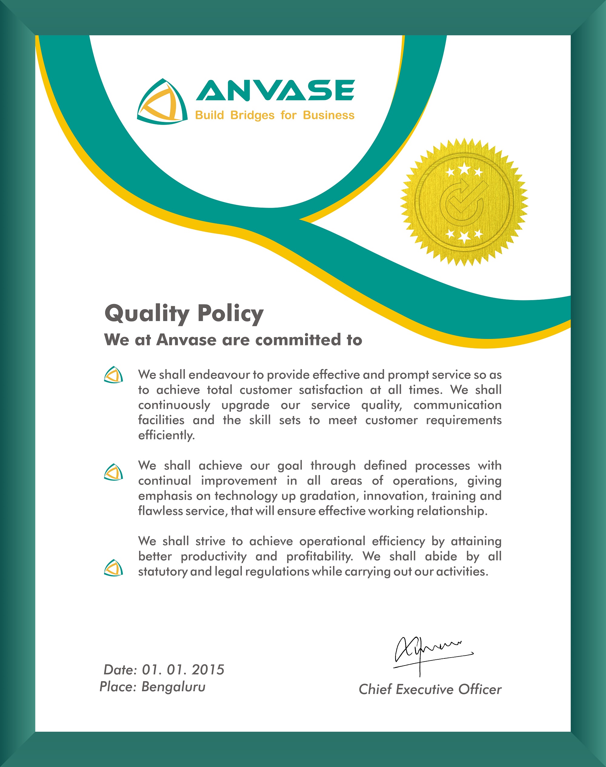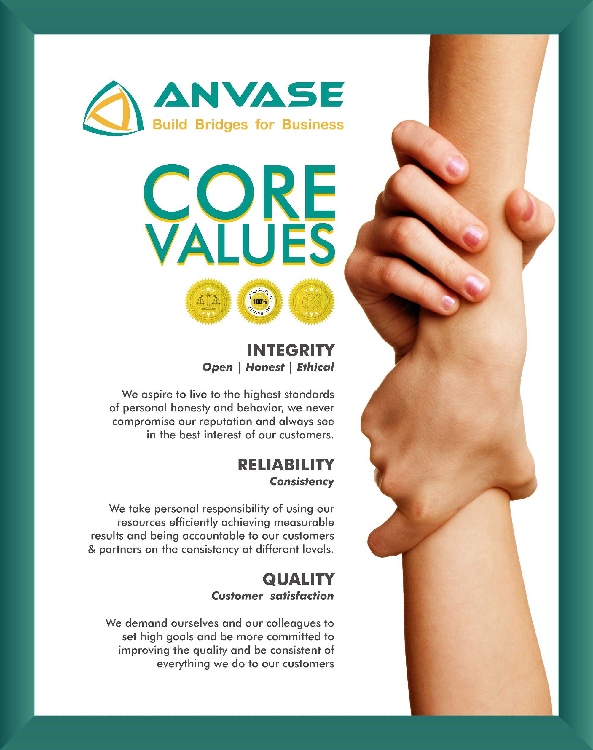 Anvase, identity proclaims The Vision, Mission and Values. Anvase, enabling it to demonstrate. Outstanding Teamwork that rises above the expectations of it’s clients.